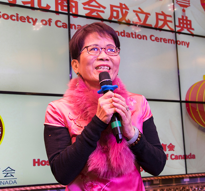 加拿大河北商会执行会长兼秘书长刘淑梅致谢词,她感谢各级政要、社区精英和河北乡亲对商会的大力支持和帮助,她也感谢商会的理事和义工们辛勤努力使今天的庆典大放光彩。她坚信在会长和理事会成员的领导、组织和齐心努力之下,加拿大河北商会将会越办越好,最后,她祝愿大家新春愉快、心想事成、万事如意。