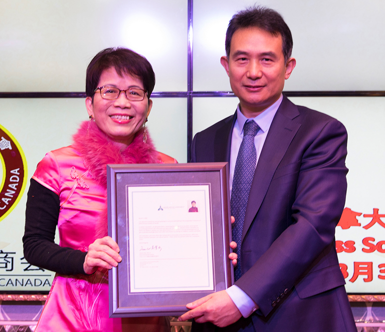 周炯华厅长、屈洁冰省议员和国会议员黄陈小萍(钱华代表)赠送了祝贺状。加拿大华人社团联席会也向河北商会赠送了祝贺状。