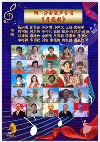 《喜迎金秋》网上聯欢會共有154个节目,分9月9-13日晚五场演出,主场在夕阳颂合唱团学习群,由转播义工同步转播到各分会和专业团队微信群,每场计有500人观看,五场计约有两千多人次观看联欢会演出。聯欢會节目丰富多彩,最大阵容,最精彩的是(夕阳颂合唱團)的网络混声大合唱《天路》,有男、女声高低音四声部,40多人参加。谢惠欽制作女声部音频合成,邝仲文制作的精彩音,视频合成,使节目演出非常生动、艳丽、动听,震撼。还有独唱、合唱、舞蹈、模特、京剧、黄梅戏、乐器合奏、英语歌、粤语歌、诗词朗诵、画作展示、书法演示、影集展示等。