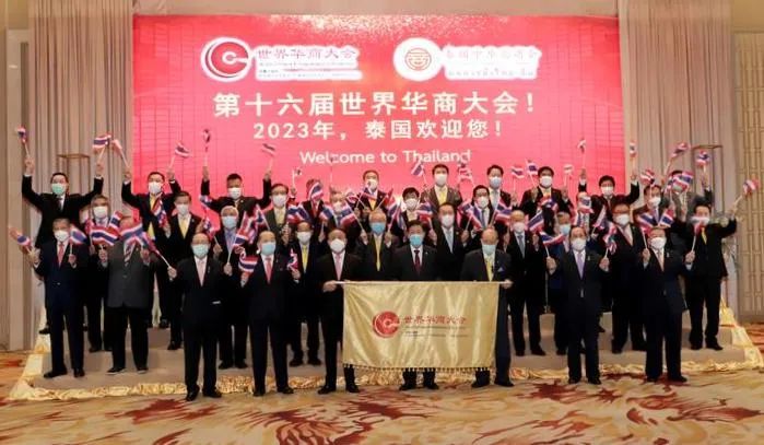 泰国中华总商会接领世界华商大会会旗,主席林楚钦代表致词,他诚挚的向全球华商发出邀请“2023年,泰国欢迎您!