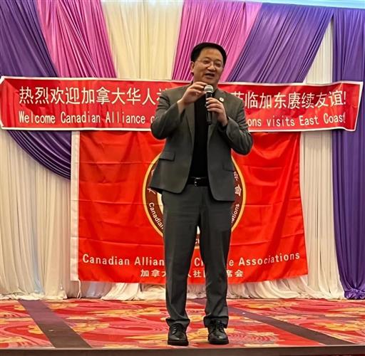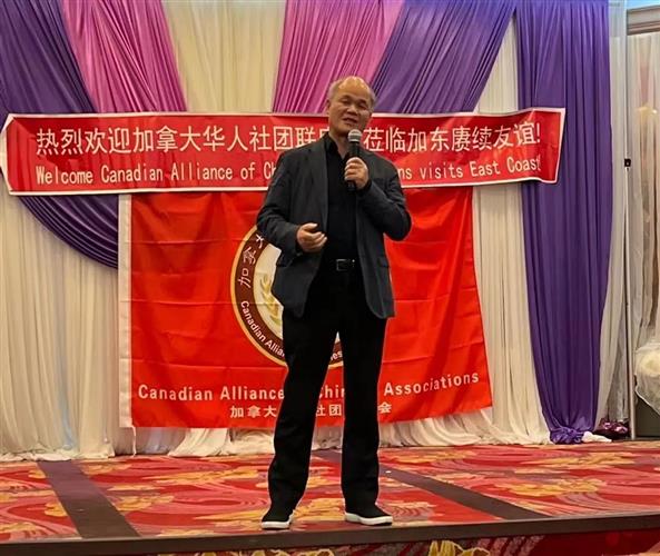 李新华善长首先致词热烈欢迎联席会旅行团自温哥华远道而来,他感谢联席会魏主席、陈主席居间协调促成这次东西部华人社团的跨省联谊。他说,我们都是兄弟,大家来到多伦多就像回到自己的家一样,我们应该多交流,互相帮助,共同发展。他希望旅行团联谊参访,一路吃好玩好。