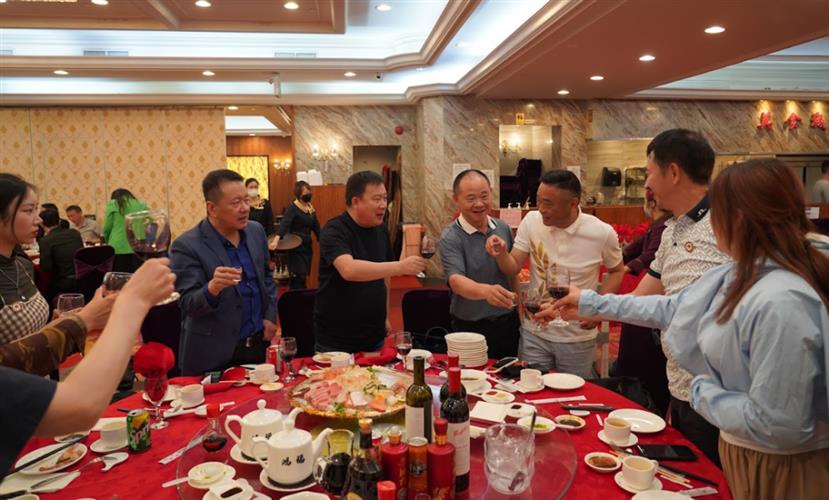 6月6日,联席会旅行团一到多伦多立即受到东部华人社团的热情接待,当晚,在多伦多万锦市鸿福海鲜酒家,多伦多华社晚宴欢迎自西部而来的联席会成员,锣鼓喧天,雄狮劲舞,东西社团携手共建加国华社未来。多伦多华人社区社团活跃 ,会员众多,各社团一直热心社会公益事业,对华人社区贡献良多。当晚,多伦多著名华人企业家、慈善家李新华,多伦多华联会主席翁国宁,深圳社团联合总会执行主席Linda Lu,福建社团联合总会主席郭晓峰,福建企业总商会、福建全加华联会主席陈凯,加中山东总商会常务副会长彭刚,上海商会会长姚颖,黑龙江总商会会长黄屏,加中专业人士协会会长王体,安徽同乡会会长张神树,合肥之友联谊会会长陈少金等一起共襄盛举,欢迎联席会东部旅行团。