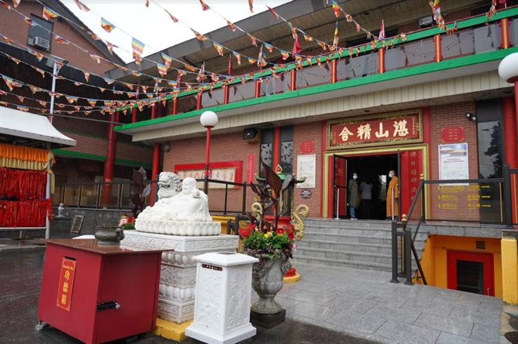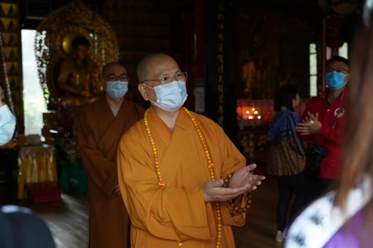 第二天一早,联席会旅行团就来到坐落于多伦多央街和湾景大道之间的佛教圣地湛山精舍,达义大和尚在大雄宝殿门口迎接大家,并在大雄宝殿为大家祈福。