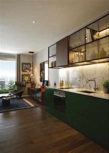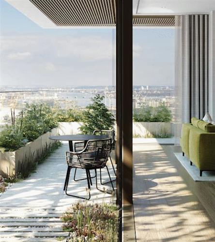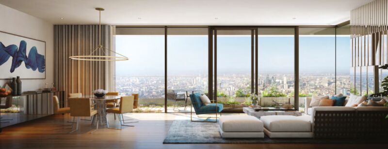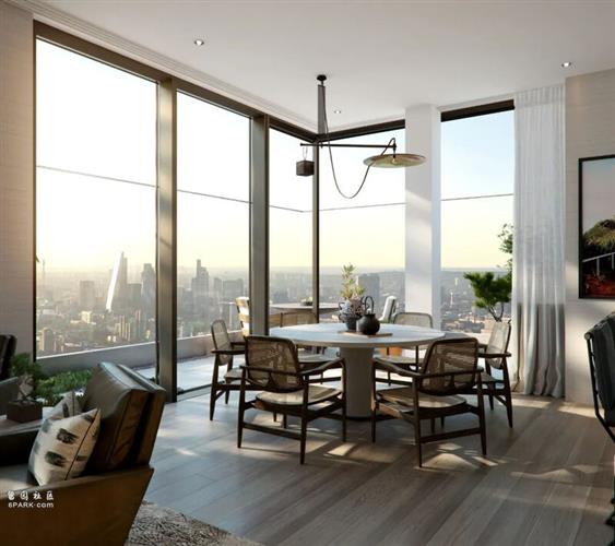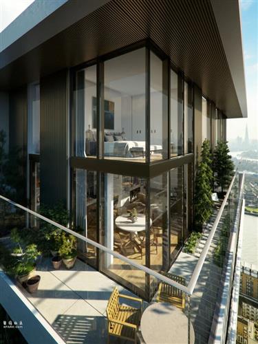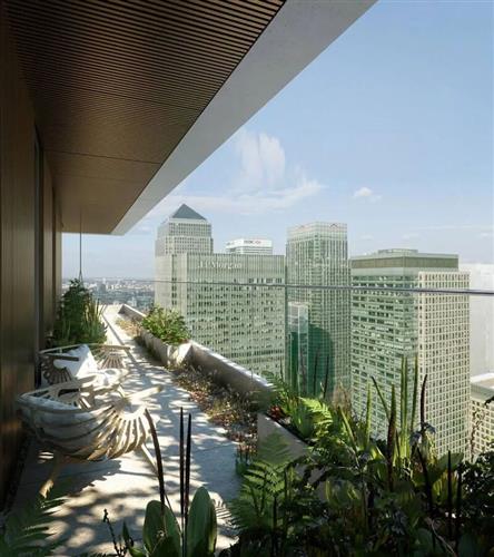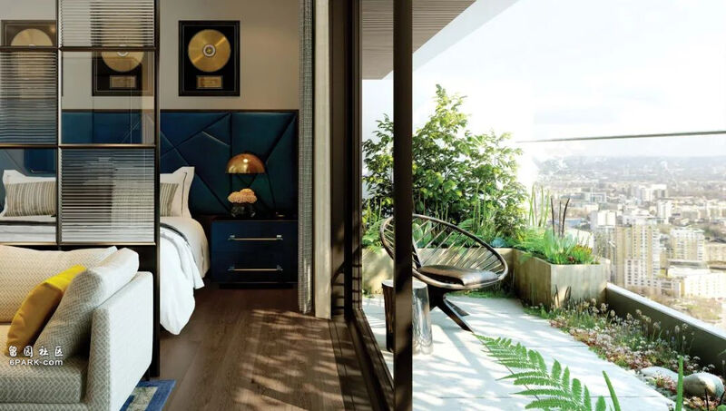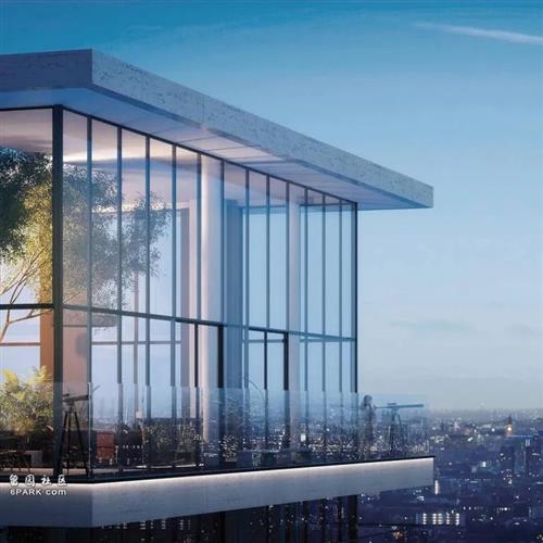 建筑设计由 Glenn Howells Architects 事务所操刀, 从现代主义建筑经典元素中汲取灵感,让简约大气的几何线条与有机的青翠绿植相互交织,最大限度利用自然采光,定义伦敦高层居住新体验。