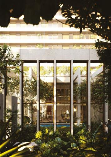 公寓所有元素有机的组合,更是将这里营造成一个开放的玻璃花园。大堂四面都以玻璃幕墙做隔断,消弭内外空间的界限。
