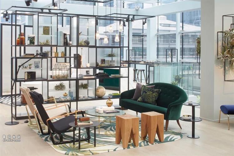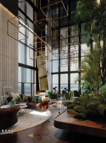 顶层的屋顶花园内设观景酒吧,处处绿意盎然,甚至室内高空也垂吊着绿色植物 ▽
