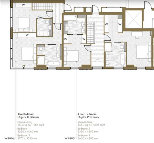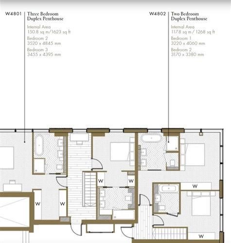 顶层公寓设在 48、49层,每套高两层,虽说不是大平层,但最大的三居室户型室内室外面积加起来也有 320 ㎡ 了。