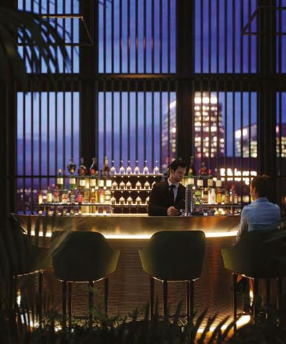 采用折中主义设计的天空酒吧 sky bar,以经典的伦敦复古风格为特色,加上热带绿植点缀,是社交休闲的理想场所。