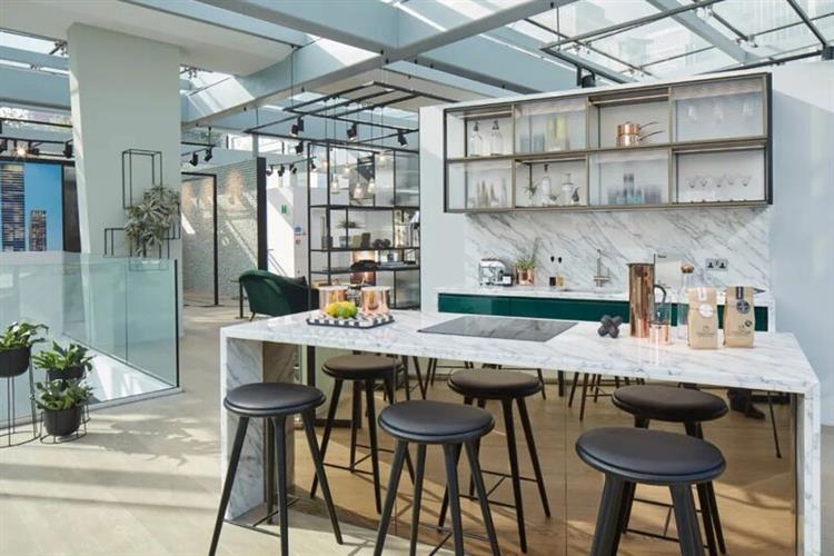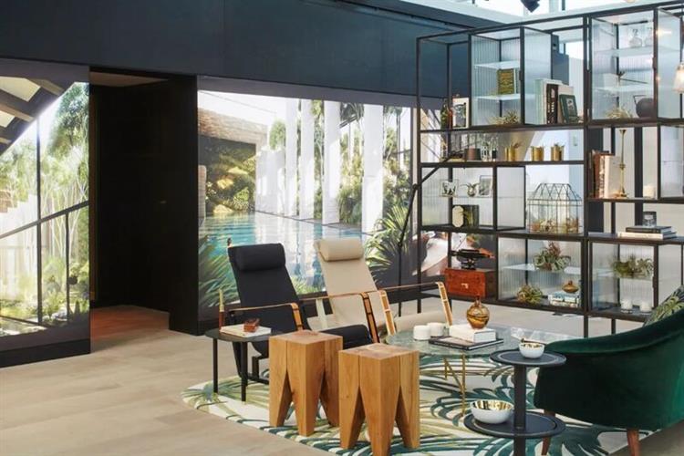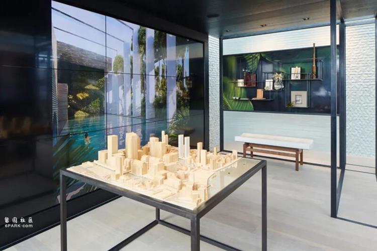 再来,不得不提的是 Amos & Amos 设计的售楼处,完全采用场景式布局,将客厅、厨房甚至浴室都搬到一起,活脱脱就是一间间迷你样板房。
