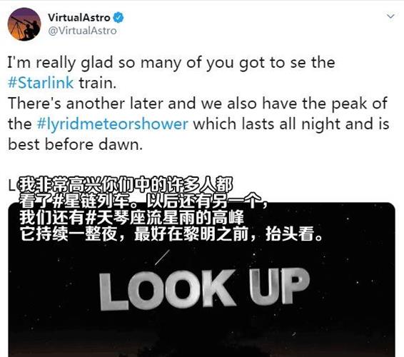 因为人们看到的并不是天琴座流星雨,而是马斯克的星链卫星(Starlink)。
