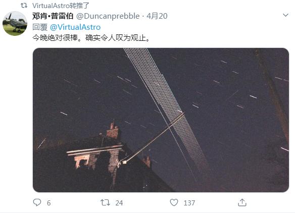 在推特上,拥有18万粉丝的天文学大V“VirtualAstro”,总会及时发布最新预报,让所有人第一时间跟着他追逐星链卫星。