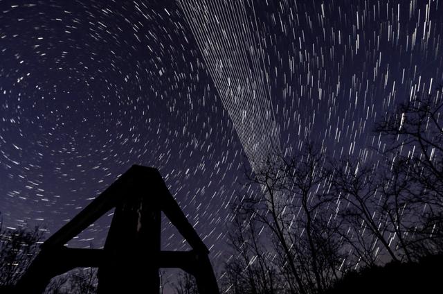 延时摄影图像中,在一颗颗流星滑落的间歇,还出现了如机关炮一般快速飞出的一波“星星”,正是由于星链运行过程中速度很快且连续不断,才造成这样的奇特图景。