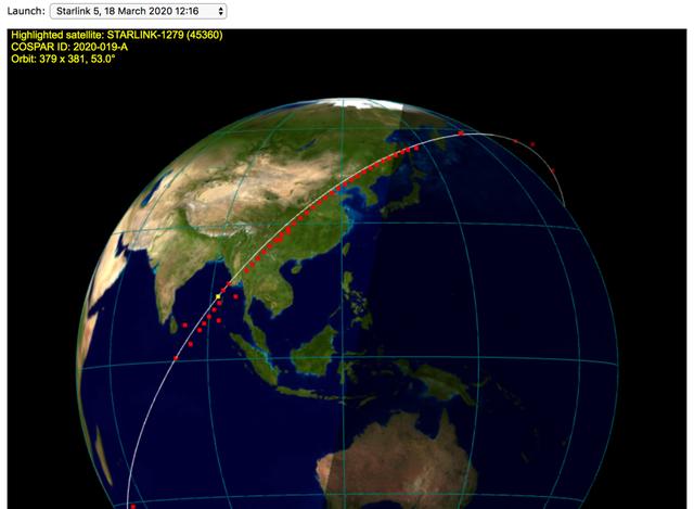 SpaceX最近一次发射是在今年3月18日,这批为数60颗的卫星上天之后,星链星座已经拥有了360颗卫星。
