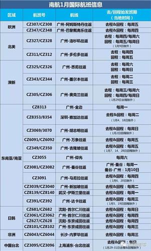 1月,南航每周可执行国际航线共计24条,以下为具体航班计划。