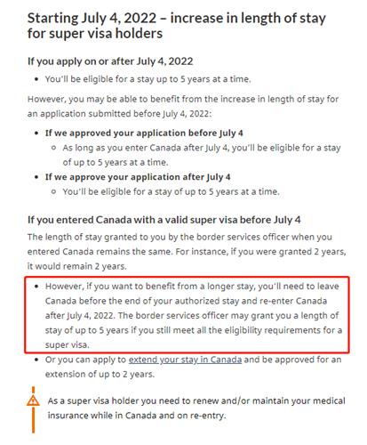 换句话说,以前有超级签证的持有人现在入境加拿大,都可以被允许停留五年了!