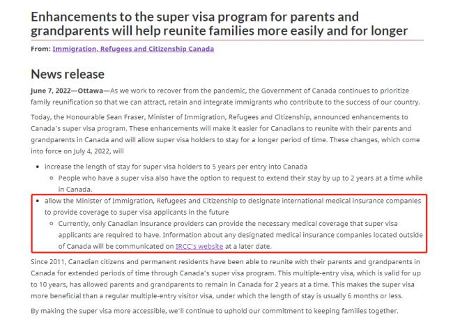 移民部前不久在宣布超级签证改革时,还提到了将允许超级签证持有人从加拿大以外的保险供应商购买医疗保险。