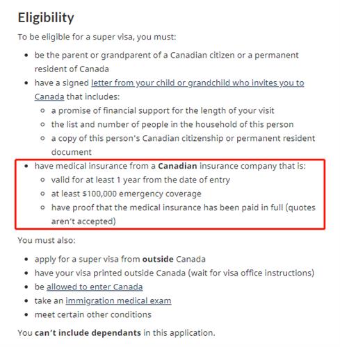 现行的保险政策仍然需要超级签证持有人拥有加拿大本土保险公司提供的医疗保险。