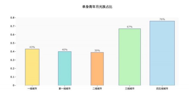 从收入水平看,大部分一线城市的单身青年月度可支配收入在8000-15000元之间,而从新一线城市往下,大部分单身青年的月度可支配收入只有2000-5000元。