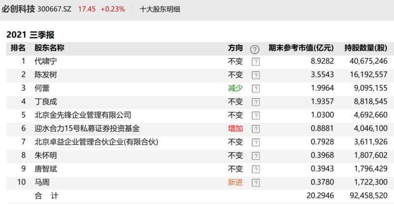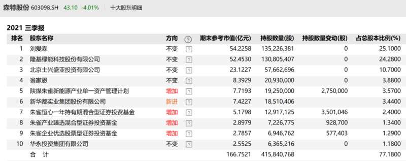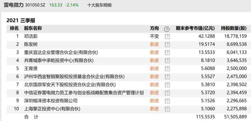也是在这一年,陈发树顺势成了福建首富。据澎湃新闻报道,2018年,陈发树以超过350亿元的财富位列福州第一富豪。陈发树同样是资本市场上的超级“牛散”。除了紫金矿业,他还投资隆基股份、中国中免,也获利不菲。根据2021年三季报显示,陈发树是雷电微力、必创科技、隆基股份、久日新材、中国中免等多家公司的前十大股东。