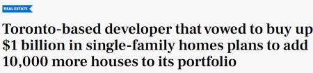 Core Development Group,两年前宣布打算在加拿大收购价值10亿元的单户住宅,计划在未来五年内增加10,000出租屋。这家多伦多开发商的首席执行官兼执行主席Corey Hawtin在接受采访时表示,其想法是“继续收购”单户住宅并根据需要进行翻新。“我们还希望引入全新的专用出租单户住宅。”
