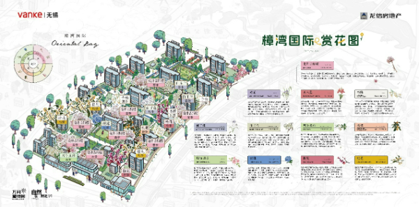 作为万科“拾系”理念在无锡的首次落地作品,樟湾国际一期今年5月底交付时,万科用一张手绘植物地图,将社区内149种四季植物细细描摹,让业主跟随着植物地图一起,打开万科植物园,走进家楼下的植物世界。