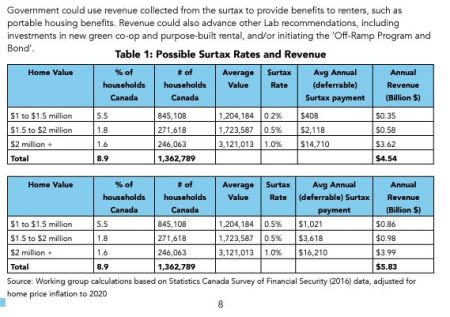 特鲁多在播客中并没有详细说明任何新的政策,但他出现在Generation Squeeze的播客中,这个组织支持对自住房征税,这一点很有意味。该组织的一份报告建议对价值超过100万元的房屋征收年度附加税。价值100万到150万元的房屋将面临0.2%的附加税,可能会随着时间的推移上升到0.5%,而价值200万元的房屋则将被征收1%的税。