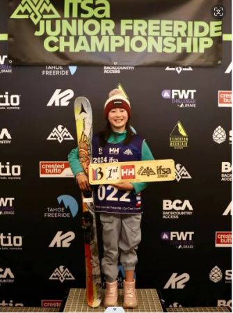 钟心懿拿到2024年IFSA美洲青少年自由滑雪锦标赛(Junior Freeride Championship )U12组冠军。(钟子威提供)