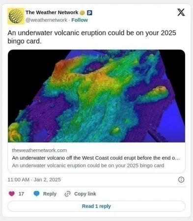 加拿大西海岸外海的一座水下火山有可能在2025年喷发。