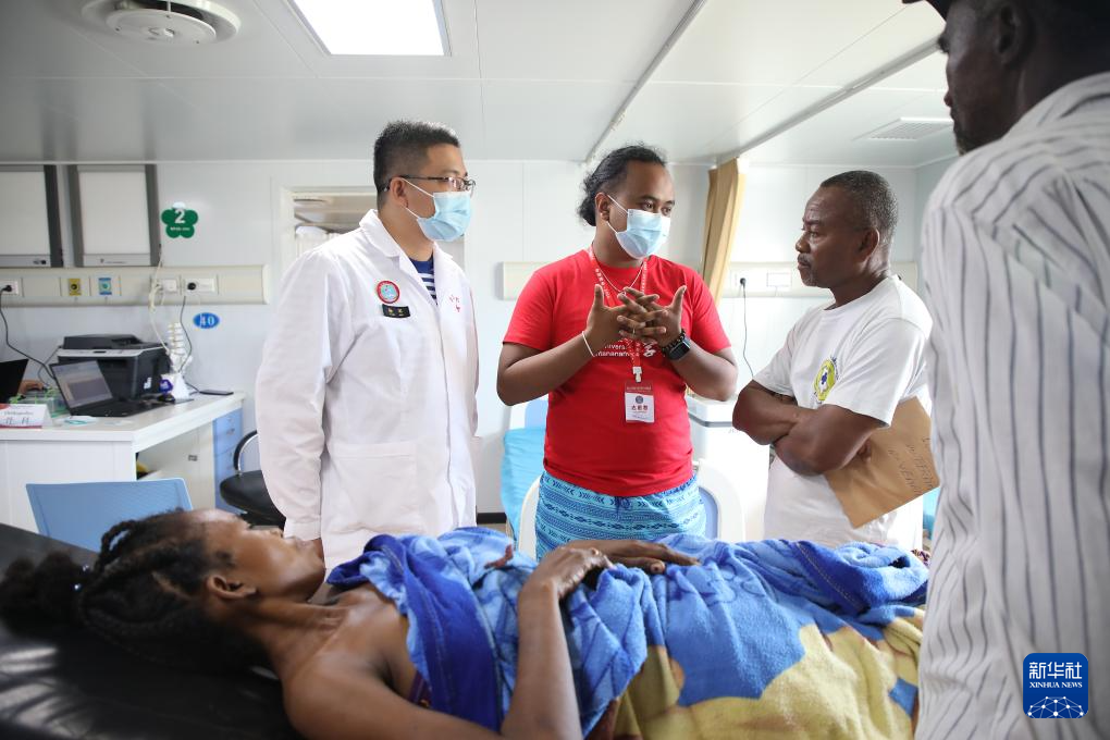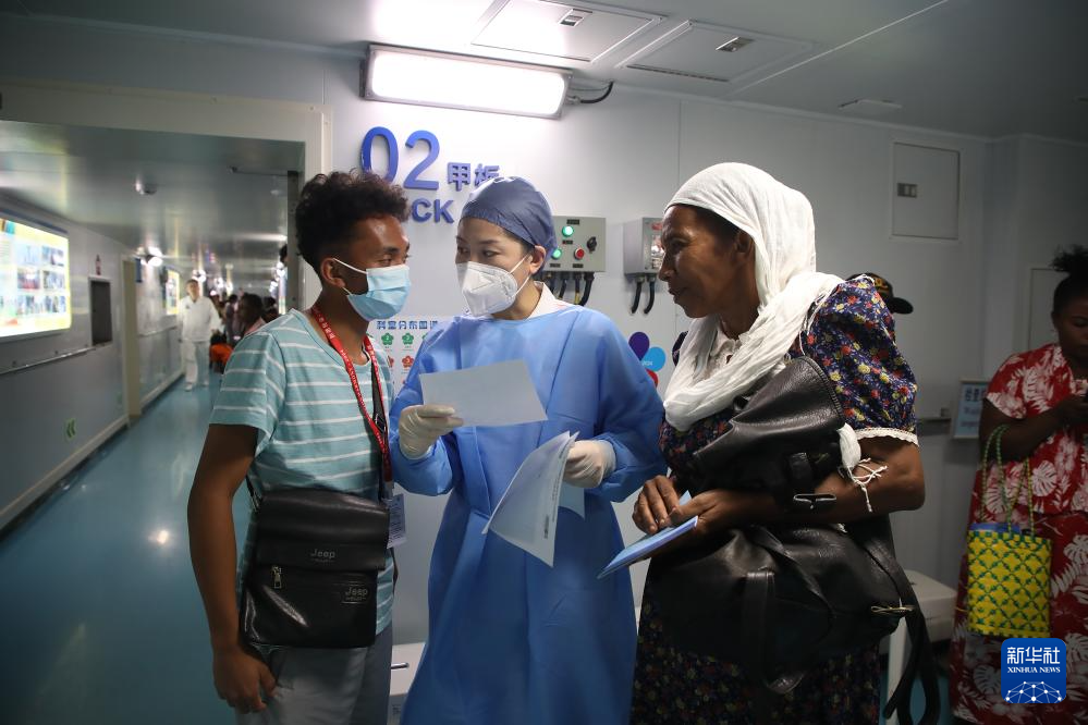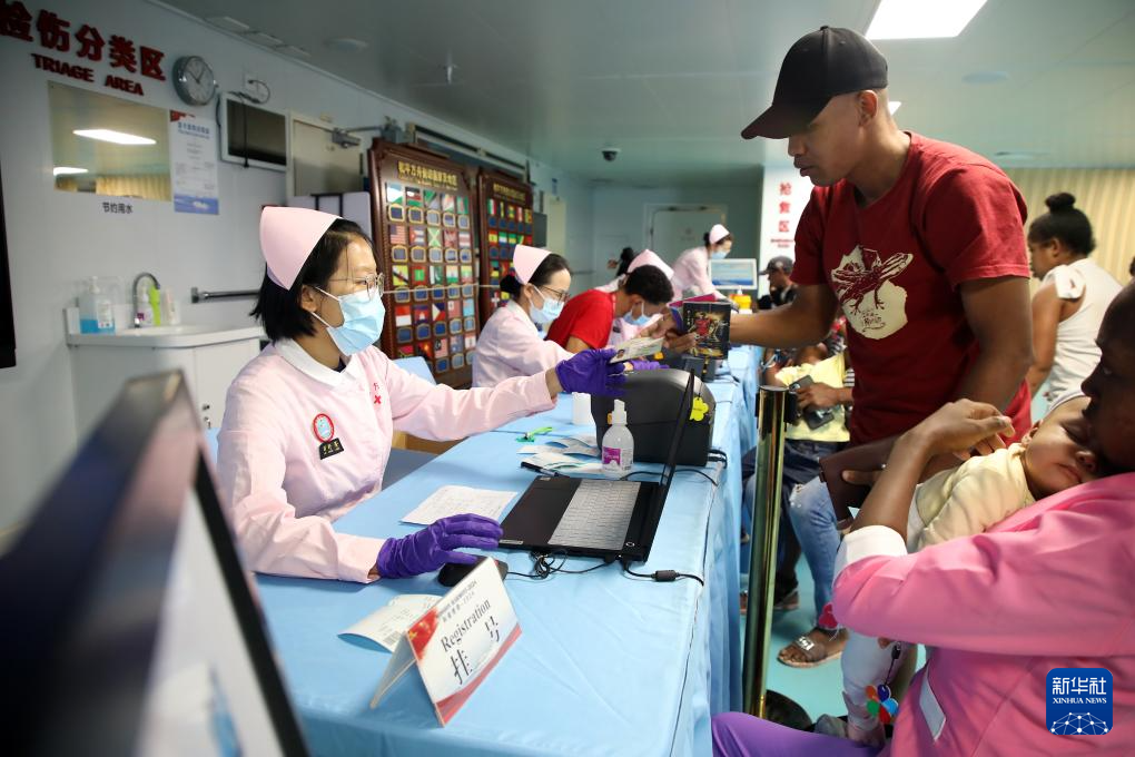 7月27日,中国海军“和平方舟”号医院船医务人员在马达加斯加开展医疗服务。新华社发(刘志磊摄)