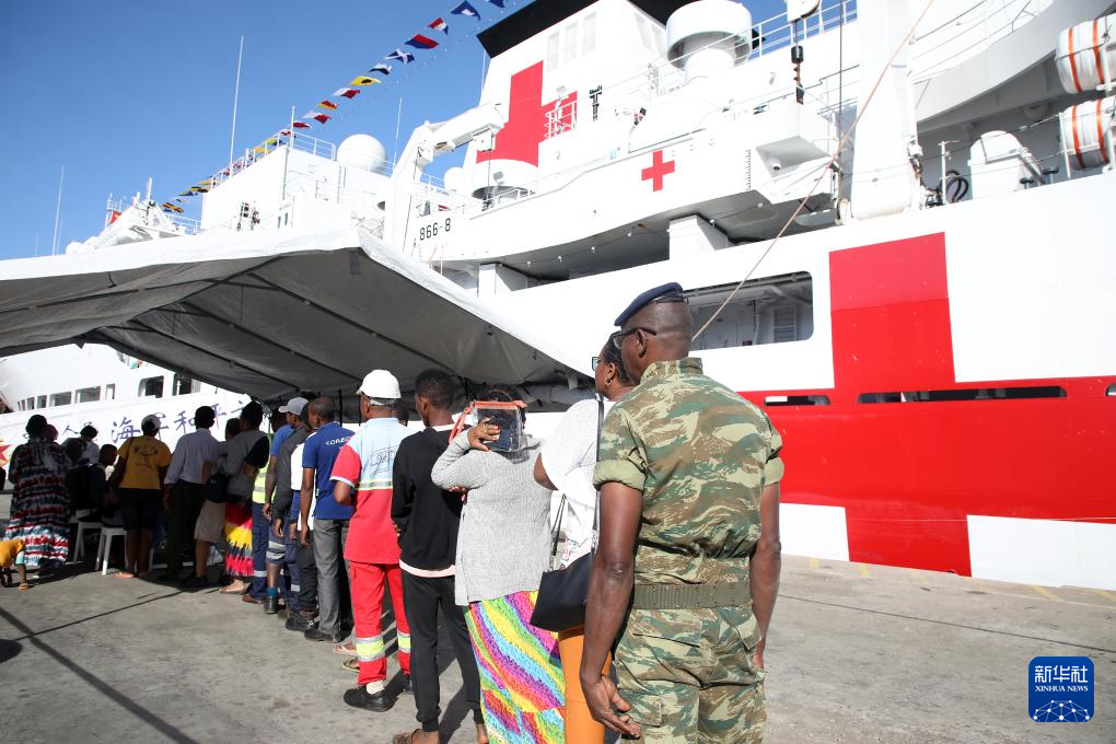 7月28日,中国海军“和平方舟”号医院船医务人员在马达加斯加开展医疗服务。新华社发(刘志磊摄)