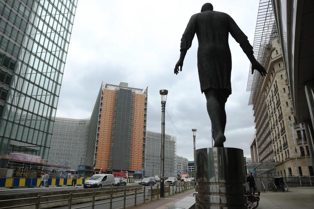 6月3日,在比利时布鲁塞尔,车辆驶过欧盟委员会大楼。新华社记者赵丁喆摄