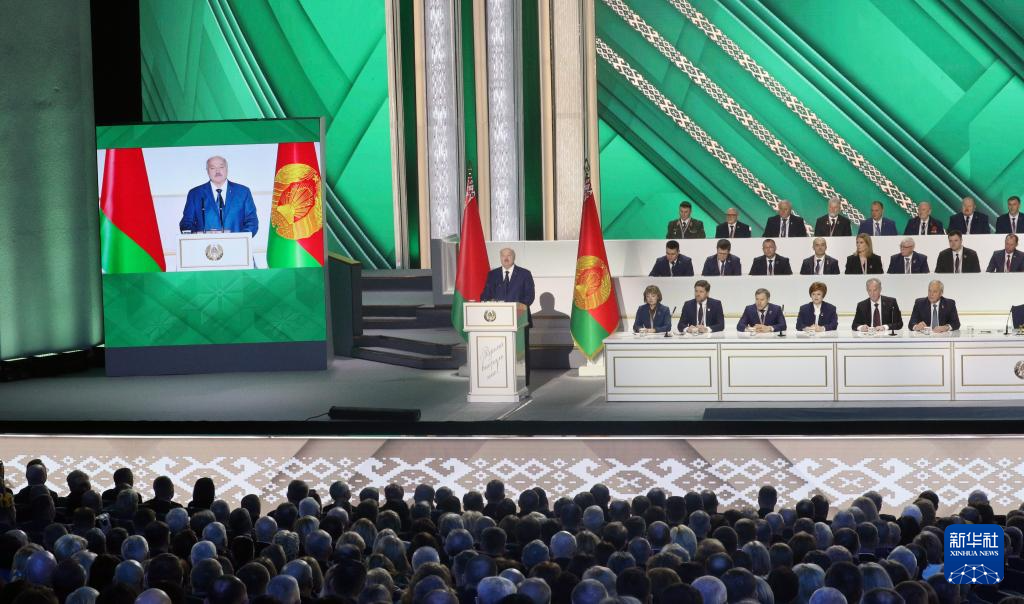12月18日,在白俄罗斯明斯克,白俄罗斯总统卢卡申科(中)向白俄罗斯议会和人民发表国情咨文。新华社发(任科夫摄)