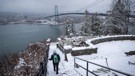 周四,一股猛烈的潮水涌向BC省海岸,导致间歇性降雪,以及随之而来的交通受阻。寒灾后持续的低温降至几十年来从未有过的水平。温哥华国际机场(YVR)周五的风冻效应低温达到-24,这是自1968年12月29日以来再未见过的数据。至于大维多利亚地区,周五白天最高温仅-6.6°C。这是50多年来最冷的一天。根据天气预报网络,温哥华从周一开始逐渐恢复到一般平均温度,周二有降雪机会,周三起一周有雨。温哥华未来一周白天平均温度: