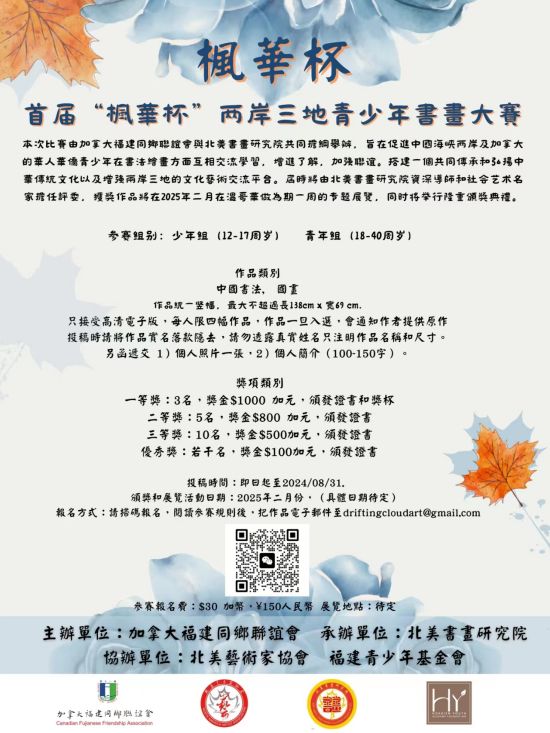 首屆“楓華杯”兩岸三地青少年書畫大賽開始接受報名