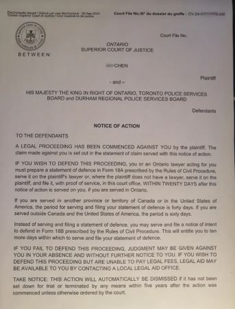 我拒绝保持沉默。2024年10月,我向安大略省高级法院提起诉讼,指控安省司法厅、多伦多警局和杜兰区警局滥用职权、恶意起诉、种族歧视以及侵犯个人宪法权利。这场诉讼不仅关乎我个人的权利,更是为所有遭受不公的少数弱势族裔发声。