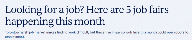 目前多伦多就业市场依然严峻,青年失业率达到14.1%。与此同时,房租和生活成本仍在持续上涨,找到一份稳定工作显得比以往任何时候都更紧迫。与其继续在网上投简历,不如到这些招聘会直接与招聘人员面对面沟通。