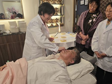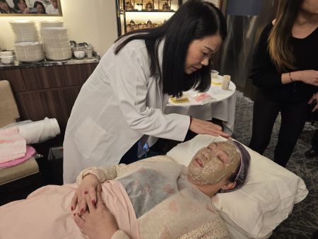 加拿大BC省中医师公会理事长张汉英采用珍贵的纯天然药材,混和蜂蜜、黑豆浆调制而成的美容面膜,为现场一名女性敷脸。20 分钟后果然肤色明显净白红润,适用者李珍也是第一次尝试中医医美,她说:「我喜欢这种自然的美容方法,想想武则天、慈禧太后等都是这么养颜,老祖宗的法子显然有理。」