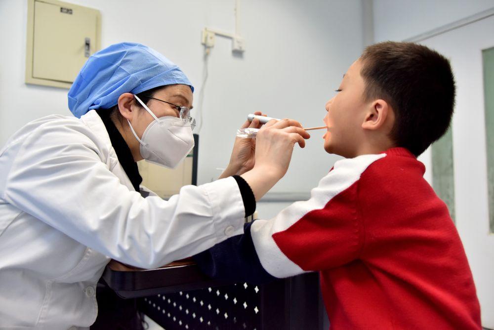 国家儿童医学中心、北京儿童医院过敏反应科主任向莉为患儿检查。(资料图片,北京儿童医院供图)