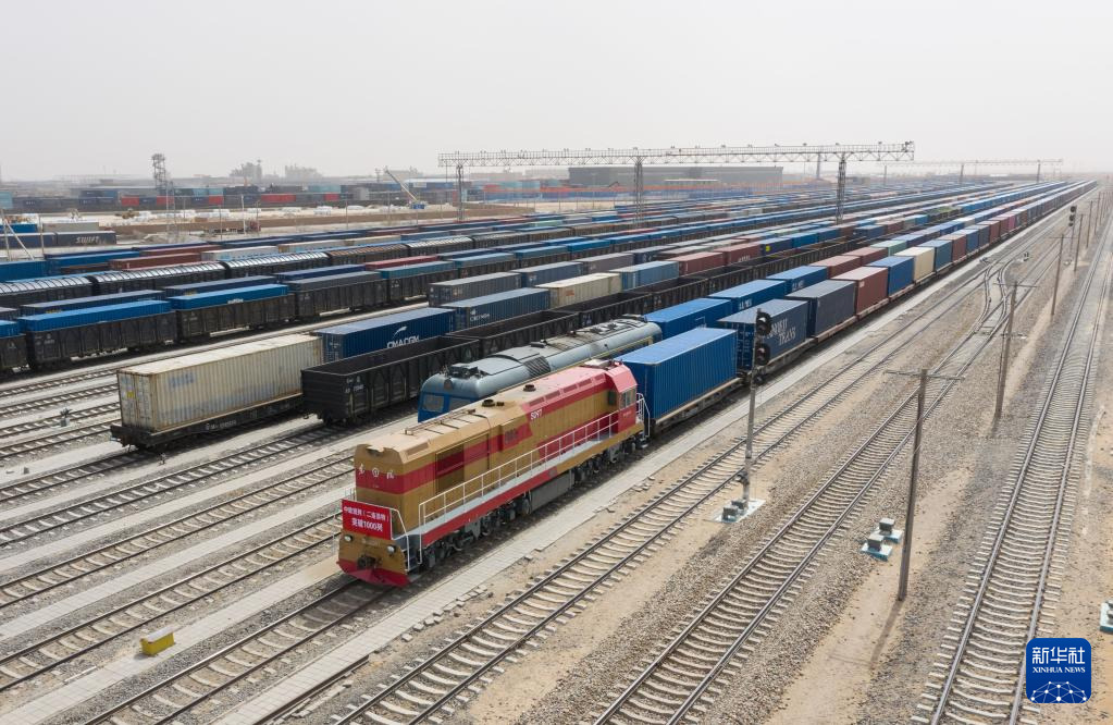 4月21日,中欧班列缓缓驶出二连浩特铁路口岸。 新华社发(张海峰摄)
