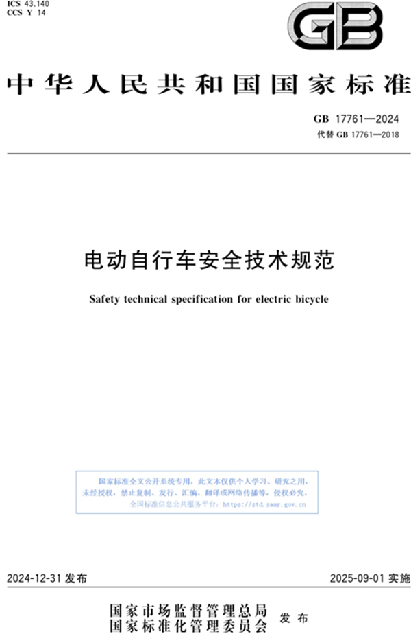 新华网北京1月22日电,电动自行车新版标准来了。由工业和信息化部、市场监管总局会同公安部、应急管理部、国家消防救援局组织修订的强制性国家标准《电动自行车安全技术规范》于2024年12月31日发布。新标准将于2025年9月1日正式实施,此后所有新生产的电动自行车都必须符合新标准要求。