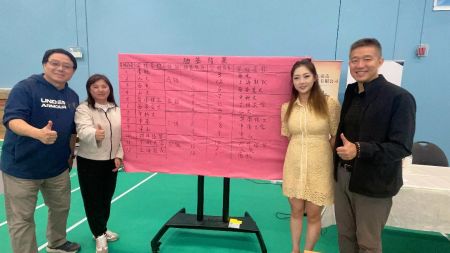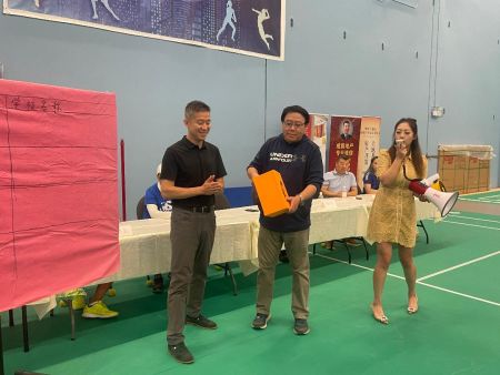 由大温十五所高校校友会参加的2023年“校友杯”羽毛球大赛的新闻发布会和抽签仪式在高桂林港的COSPORTS兵羽馆举行。