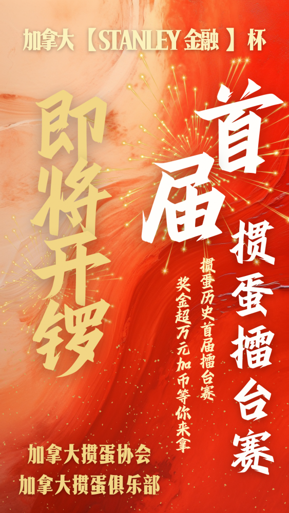 首届掼蛋擂台赛总奖金超1万加元,预计一年赛期,采用守擂、攻擂形式,将在多伦多、温哥华、密市、南京等地设分赛场,比赛场次不低于100场、每场比赛裁判执裁,网络现场直播,选出16~20名优胜者后,再采用复式或循环赛方式,赛出加拿大掼蛋十大高手、四大天王、终极掼神!