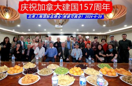 (本网讯)6月29日,北美上海国际总商会在大温哥华列治文市景泰金融会议厅举办午餐会,庆祝加拿大建国157周年。北美上海国际总商会会长林决定,副会长兼秘书长徐莉莉,副会长吴登金、李煌,理事David Hu、谢惠欣、王敏、Angela、Henry以及Ivy Zhang、马在新、胡丕峰、李卉、薛敏勤等和移民自上海等地的各界精英参加了庆祝会。