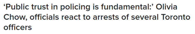 多伦多市长邹至蕙(Olivia Chow)周四上午在宣读一份事先准备好的声明时表示:“多伦多市民有权知道,他们每天打交道的警察是值得信赖、廉洁且诚信的,而不是腐败、不守操守的。”