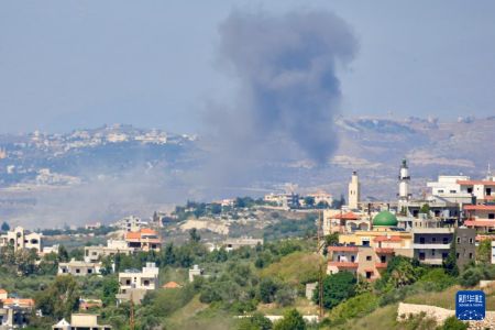 这是6月1日从黎巴嫩边境城镇查马拍摄的以军袭击后升起的浓烟。