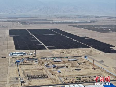 6月18日,在青海省海西蒙古族藏族自治州格尔木市,全球规模最大的液态空气储能示范项目正在紧张施工中,预计年底投产。据悉,该新型储能项目建设规模为60MW/600MWh,建成后将成为全球规模最大的液态空气储能示范项目。液态空气储能技术具有大规模长时储能、清洁低碳、安全、长寿命和不受地理条件限制的优点,其应用场景广泛,尤其在可再生能源消纳、电网调峰调频备用黑启动、支撑分布式电力和微网以及综合能源服务等领域优势突出。图为青海省格尔木市,全球规模最大的液态空气储能示范项目施工现场。(中新社记者 马铭言 摄 无人机照片)