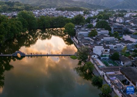 7月7日,游客在安徽省黄山市黟县宏村游玩。