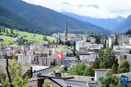 这是7月13日拍摄的瑞士达沃斯小镇。
