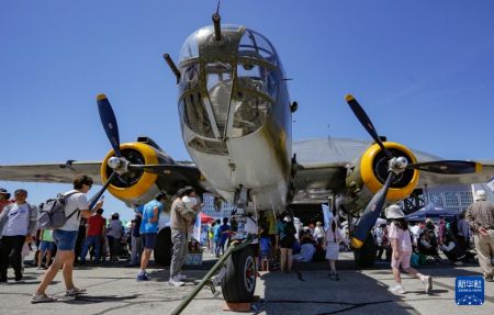 7月13日,人们在加拿大不列颠哥伦比亚省德尔塔举行的2024年边界湾航空展上参观一架展出的飞机。