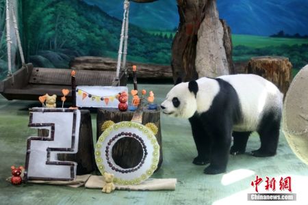 台湾写真:大熊猫“圆圆”的20岁生日会